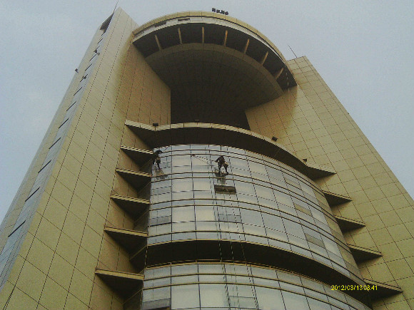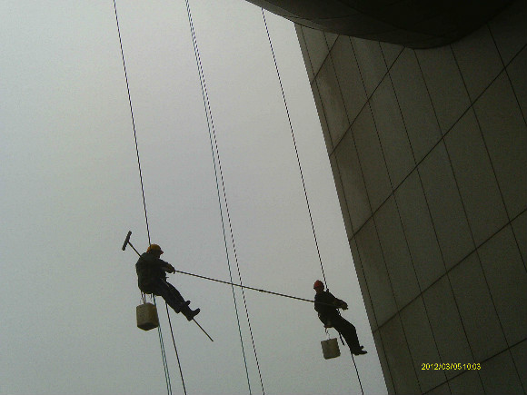 高層外墻清潔、高層玻璃幕清潔、高層外墻粉刷、高空外墻廣告安裝。因為高層外墻存在著危險性和復(fù)雜性, 所以這項工作是有著相當(dāng)程度的科學(xué)性和專業(yè)性。