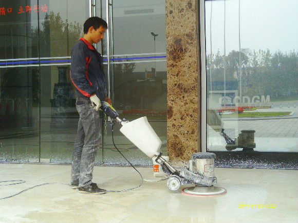 再到80年代末,緣自歐洲程序的一種工藝,“晶面處理系統(tǒng)”于90年代推進中國市場。這個系統(tǒng)就是針對水蠟工藝上硬度、光澤、清澈度不夠及工藝復雜等不足改良而成的,其工藝原理就是在石材投入使用及未受磨損前,以幾種水晶加強劑配合機械,利用石塊籍壓于熱力產(chǎn)生之化學作用,先將石材表層下的氣孔封閉,使其污垢不能滲入,同時表層上加上幾層熱處理保護層,起到增加石材表面的硬度和光度,更有防滑之功效,石質(zhì)原有天然色澤得到帶出及全面性保護,保持度教一般水蠟高幾倍。長期使用,耗用的人力物料成本較水蠟低,無須每天補蠟及定期起蠟等復雜工序,此工藝為目前大理石保養(yǎng)及翻新后晶面的理想工藝,我們稱為石材打蠟第三代。